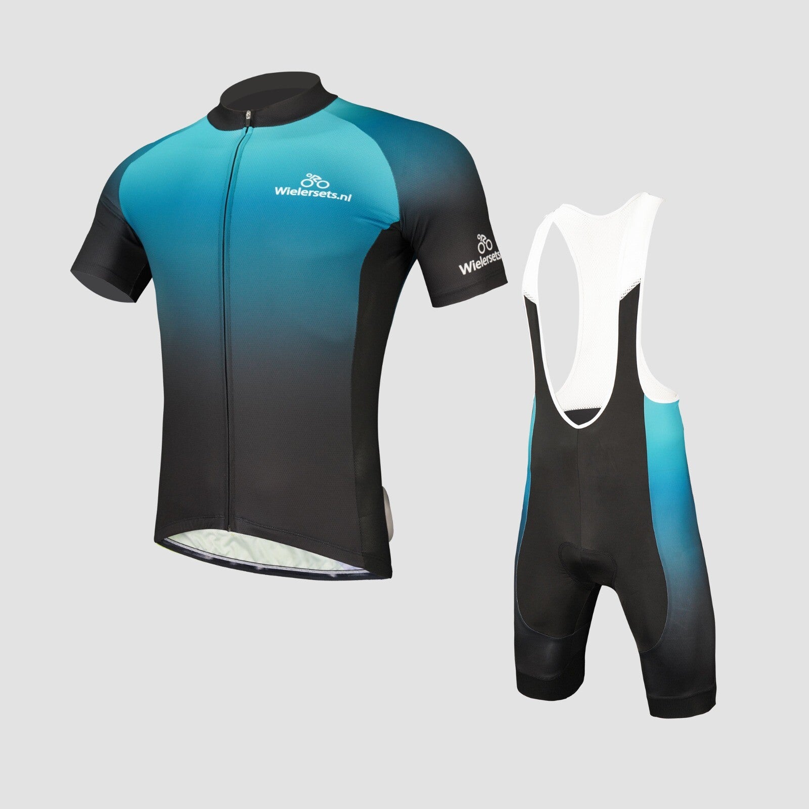 Een aansluitend, ademend wielershirt met 3 zakken op de rug en een comfortabele fietsbroek met zeer goede zeem