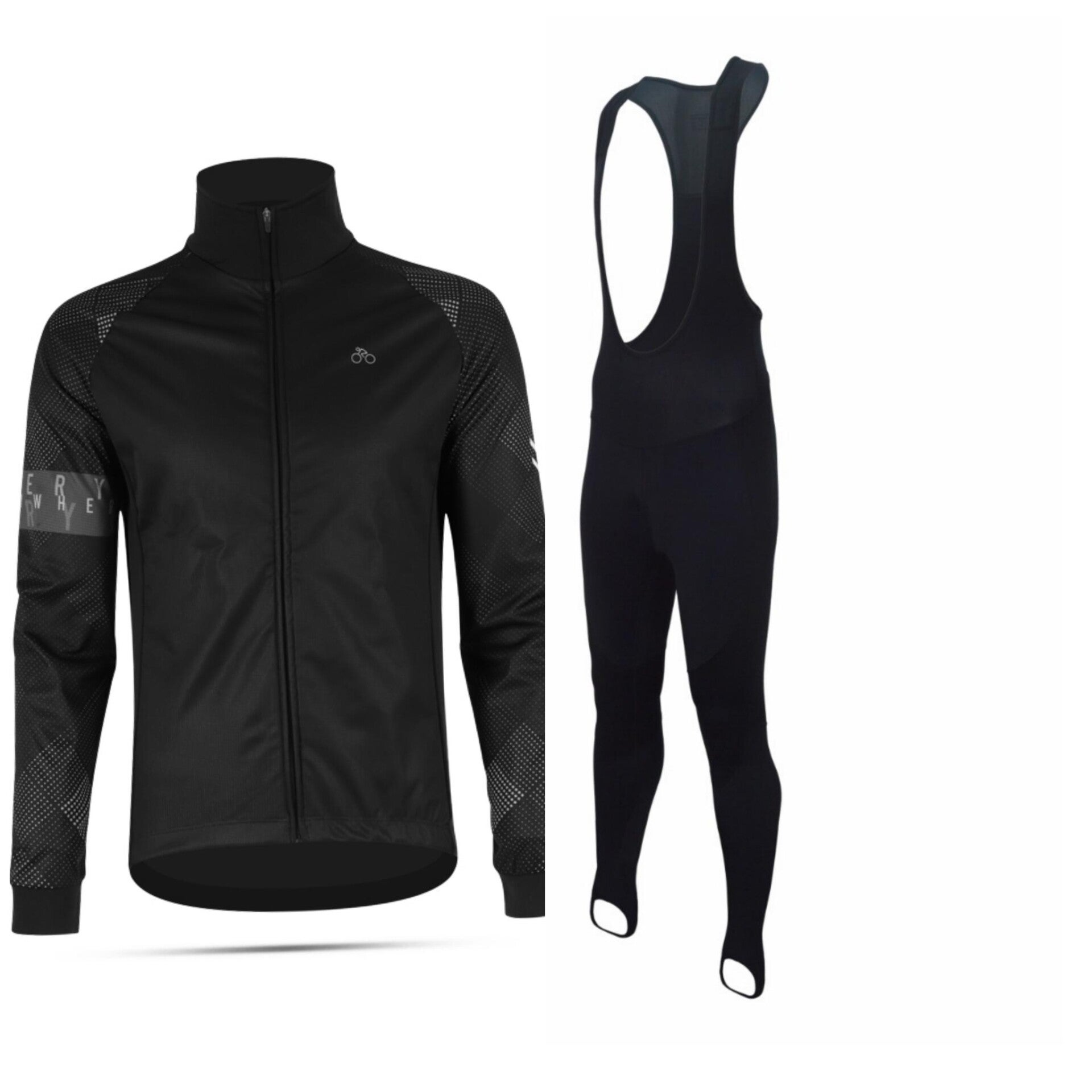 Gevoerde winterjas met drie zakken op de rug. De jas geeft warmte en ademend goed. Met een thermo shirt eronder fiets je comfortabel rond het vriespunt. De broek is de bekende PRO broek met Gel Force zeem voor lange afstanden en zware omstandigheden met een dikkere winddichte laag