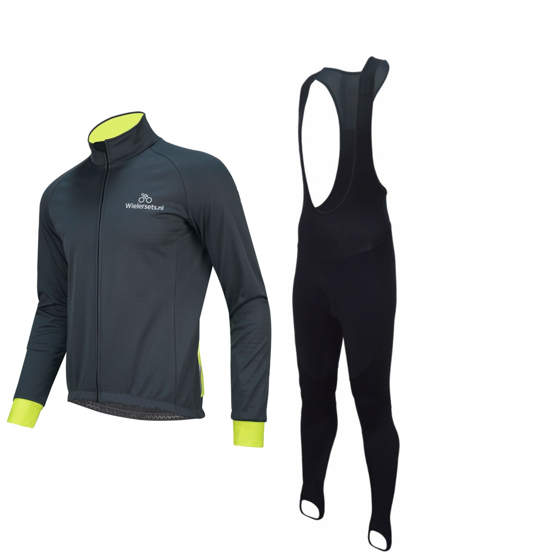 Gevoerde winterjas met drie zakken op de rug. De jas geeft warmte en ademend goed. Met een thermo shirt eronder fiets je comfortabel rond het vriespunt. De broek is de bekende PRO broek met Gel Force zeem voor lange afstanden en zware omstandigheden met een dikkere winddichte laag