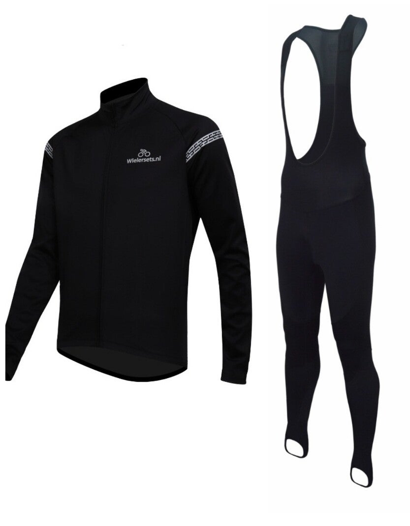 Gevoerde winterjas met drie zakken op de rug. De jas geeft warmte en ademend goed. Met een thermo shirt eronder fiets je comfortabel rond het vriespunt. De broek is de bekende PRO broek met Gel Force zeem voor lange afstanden en zware omstandigheden met een dikkere winddichte laag